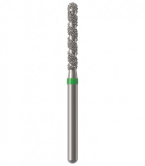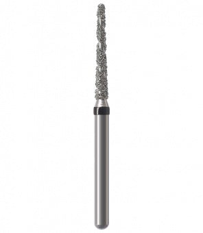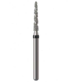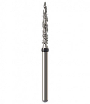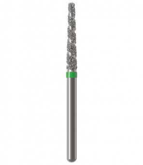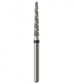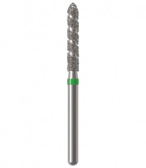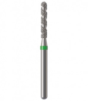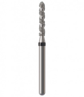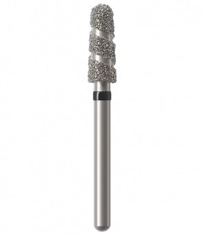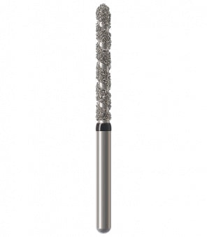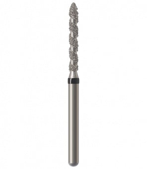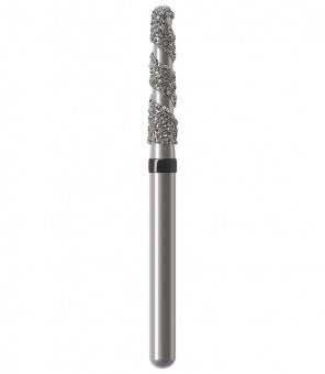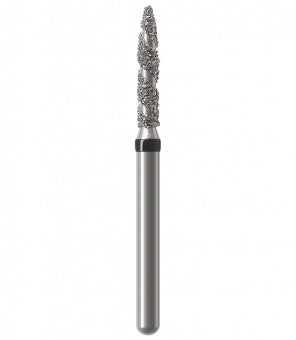 Los instrumentos diamantados turbo se utilizan para la preparación de coronas y cavidades así como la eliminación de empastes viejos. Las zonas libres de diamantes permiten que el rocío refrigerante fluya sobre el instrumento durante la preparación absorbiendo el calor generado, lo que resulta en una reducción rápida y un corte más frío. Esta característica particular minimiza el riesgo de lesión de la pulpa. Junto con los granos, el espiral produce una superficie lisa sin ranuras a altas tasas de remoción. Al mismo tiempo, el espiral libre de diamantes proporciona un óptimo transporte del material de la sustancia dental (acción de autolimpieza). Esto reduce el tiempo de trabajo durante las preparaciones de coronas y cavidades, así como la eliminación de empastes hechos de amalgama o composite.